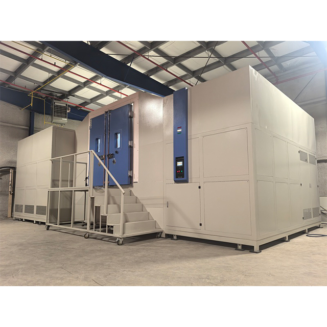 2. Equipped with PT-100 Class A sensors and optimized airflow, the walk in cliamte test chamber maintains temperature stability within ±0.5 °C and humidity variation within ±2.5%. Heating and cooling rates are adjustable, ensuring uniform conditions across the entire 98 m³ space for consistent, reproducible results on every sample.