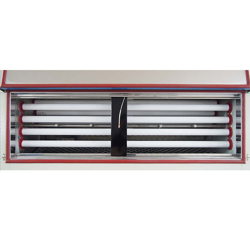 The UVA UVB UVC Lamp UV Accelerated Weathering Tester uses imported QUV fluorescent UV lamps, including UVA-340, UVB-313, and UVB-351, each selected to meet specific testing standards and application requirements. The lamps provide controlled spectral output in the 290–400 nm range, ensuring accurate reproduction of UV radiation responsible for material degradation. Lamp output remains stable over a service life of up to 5000 hours, minimizing spectral drift and maintaining consistent irradiance throughout long-term tests.