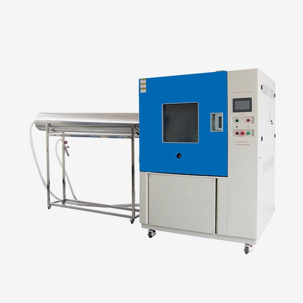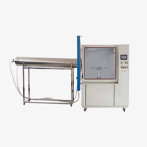 Before testing, mount the specimen securely on the turntable and adjust its height and angle as required by the test standard. Select IPX5 or IPX6 mode via the touch-screen controller; the system will automatically configure the corresponding nozzle and flow rate. Confirm water supply, filtration, and drainage systems are operating normally, then start the test cycle. During operation, the chamber maintains the specified flow rate and spray distance through closed-loop control, while the turntable rotates to ensure uniform water exposure. Upon completion of the minimum test duration, stop the system, disconnect power to the specimen if applicable, and visually inspect the sample for water ingress or functional abnormalities in accordance with IEC 60529 criteria.