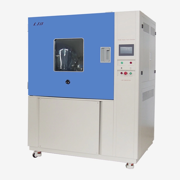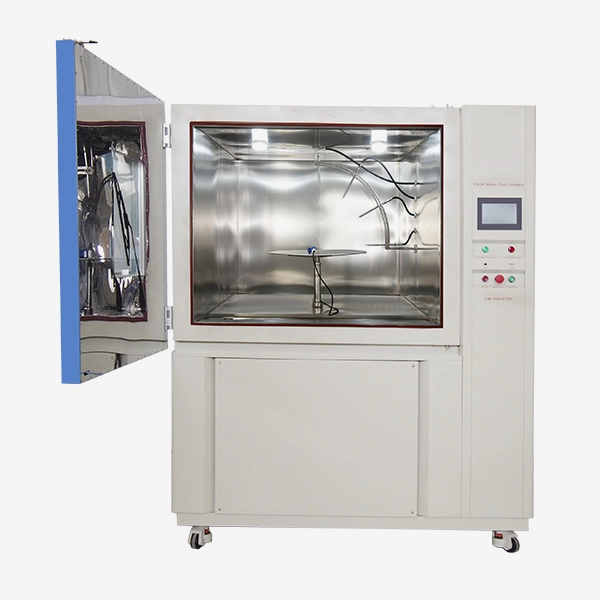 Before starting the test, ensure the chamber is properly connected to the water supply and power source. Set the desired water pressure, temperature, spray angle, and duration on the control panel according to your test requirements. Place the specimens securely on the rotating platform, keeping them at least 10–15 cm away from the spray nozzles for uniform exposure. During testing, monitor the pressure, temperature, and rotation speed to ensure they remain within set parameters. After the test, use the drainage system to safely remove water and clean the chamber for the next cycle.