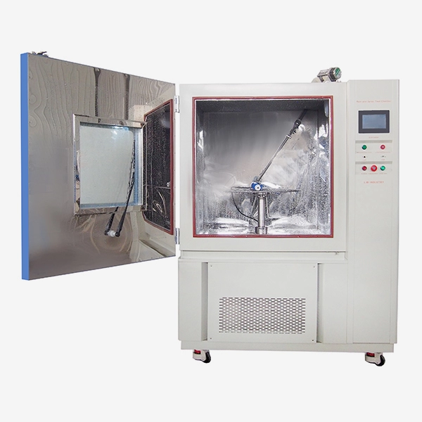 The rain and spray test chamber is formulated in accordance with JIS D 0203 standard to test the waterproof performance of the product.The workroom is equipped with 40 spray nozzles and 2 rain nozzles, and the spray room is equipped with water circulation system to reduce water consumption and effectively save water resources.